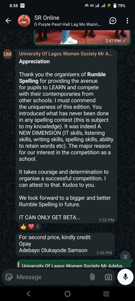 • Established in 2014, Spelling Rumble has become a premier literacy competition in Alimosho and Lagos State.